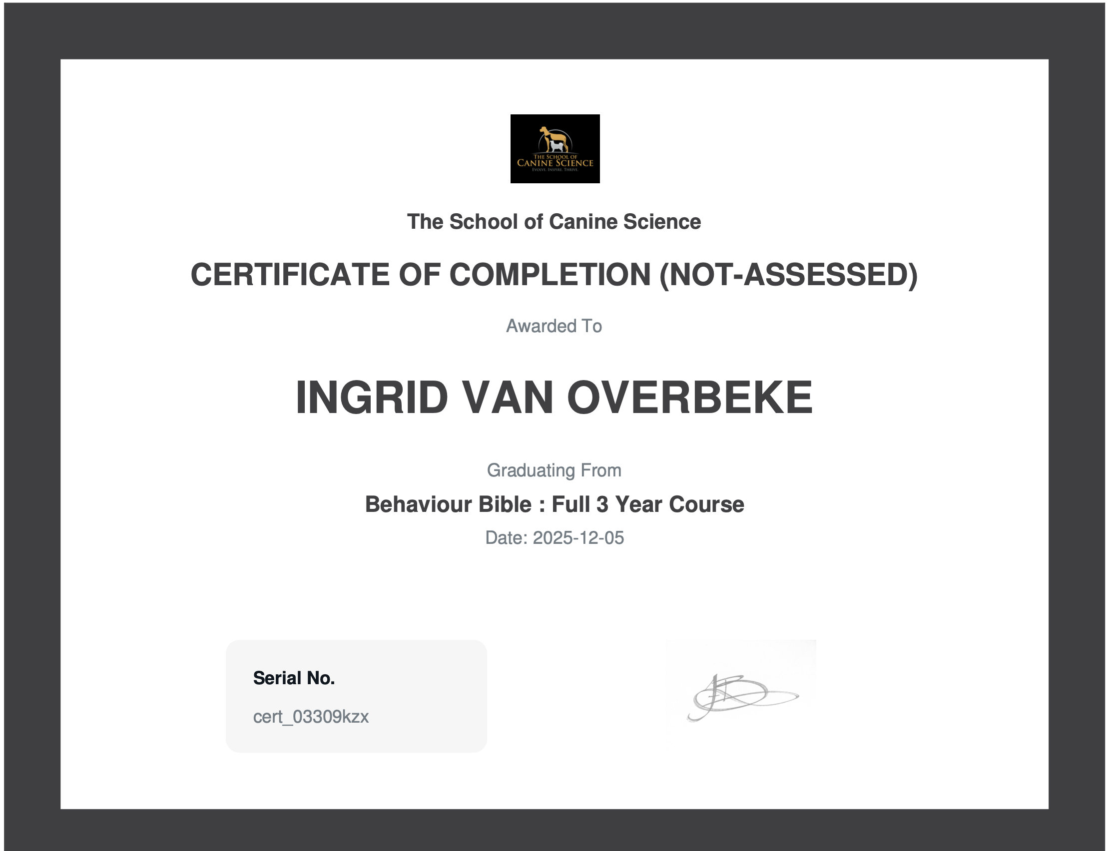 2022-2025: The Behaviour Bible: 3 year course, The School of Canine Science